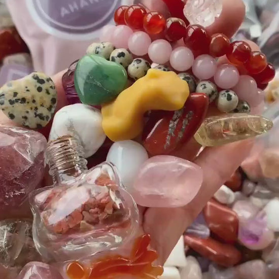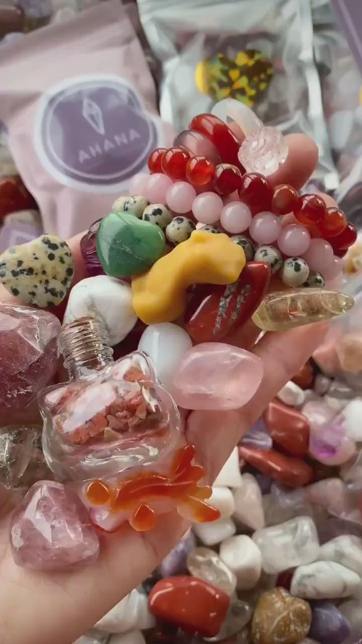 A beautiful love-themed mix of genuine crystals in a variety of hues. 125g (4.5-5.0oz) of genuine crystals, crystal jewelry and mini crystal carvings chosen specifically for the Valentine's Day. Available only while it lasts! Keep an eye on our Instagram and TikTok for a video update. ❤️