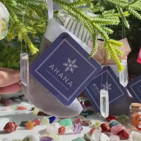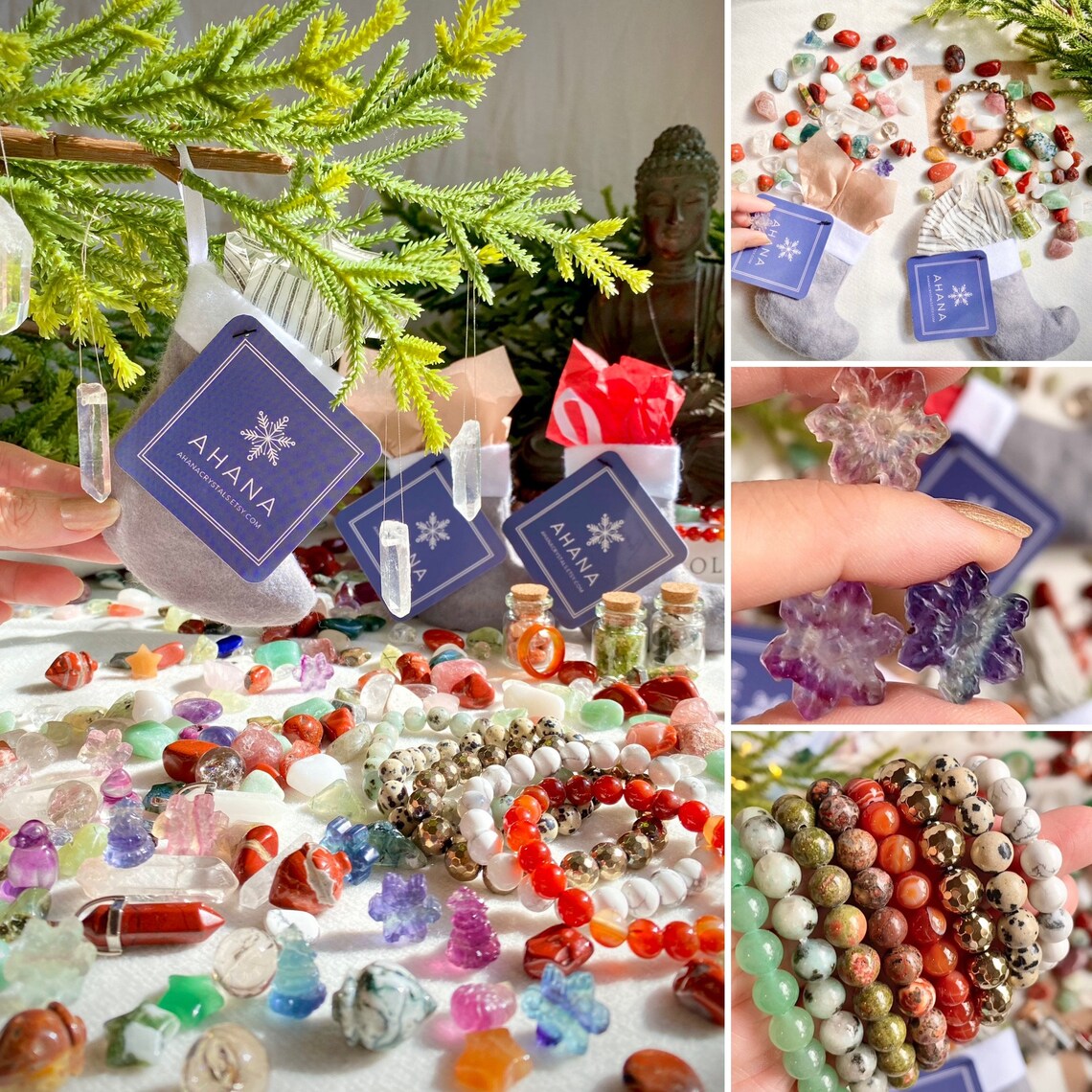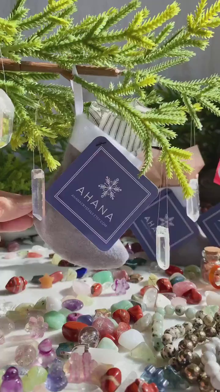 Each Santa Scoop Stocking is stuffed with beautiful crystal surprises! You will receive a random selection of gorgeous crystals in a Christmas stocking or pouch.